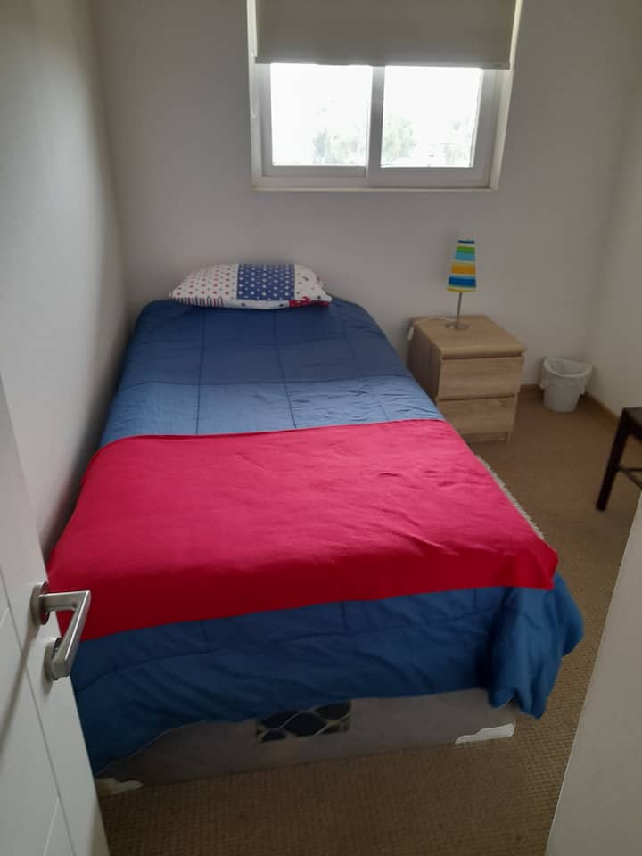 Una habitación solo para ti en un alojamiento, con acceso a áreas compartidas.