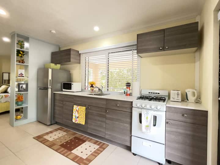 Cerca de la playa, restaurantes y supermercado.