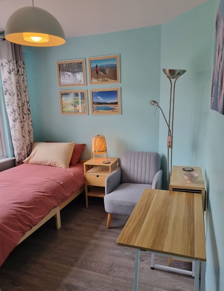 Una habitación solo para ti en un alojamiento, con acceso a áreas compartidas.