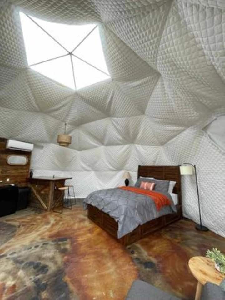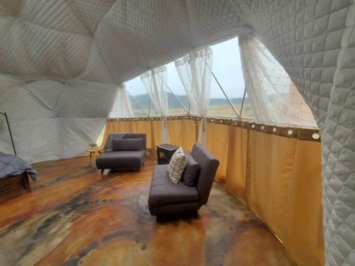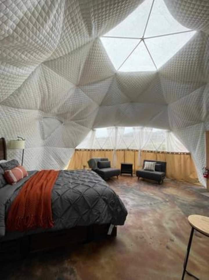 Glamping en domo al atardecer con aguas termales privadas