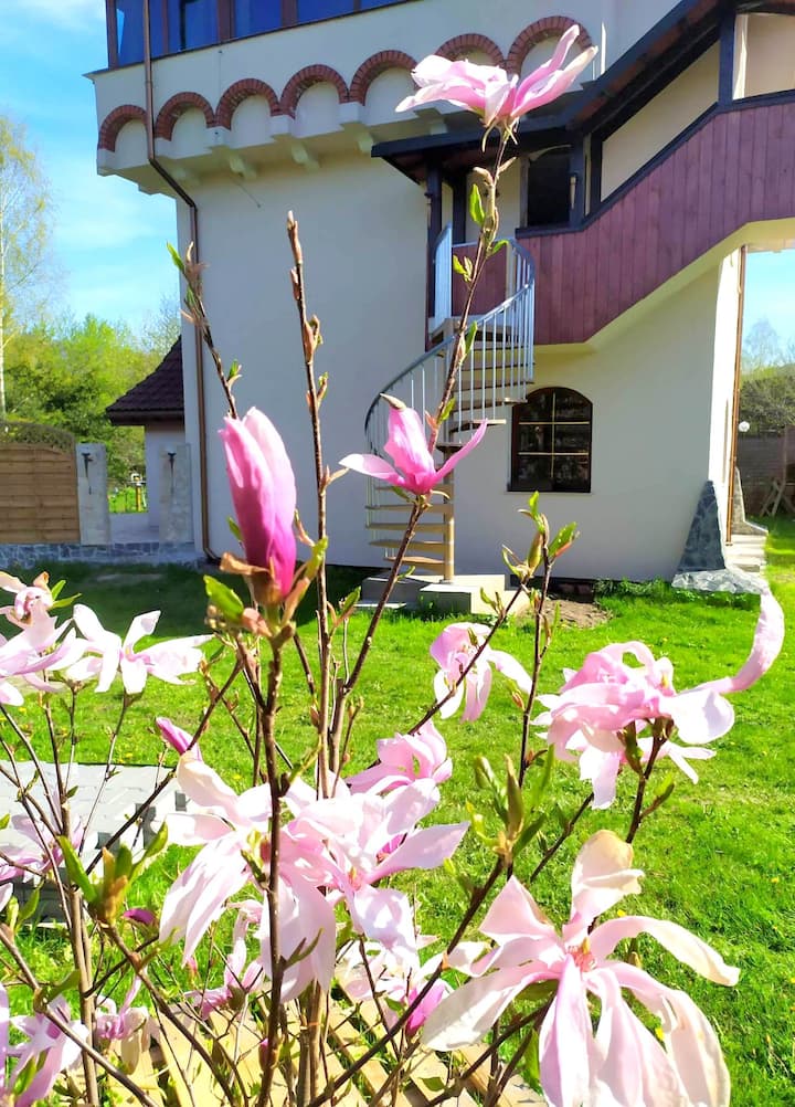 Dream Tower es un lujoso apartamento de 85 m2, ubicado en la parte superior /equivalente de un edificio en forma de segundo piso/torre, desde las ventanas puedes echar un vistazo... ¡todo! Están ubicados en tres paredes del apartamento y la puerta principal está en el cuarto :)