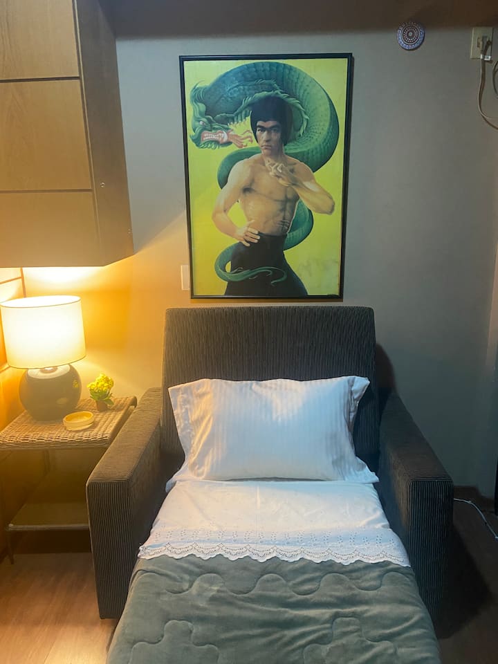 Una habitación solo para ti en un alojamiento, con acceso a áreas compartidas.