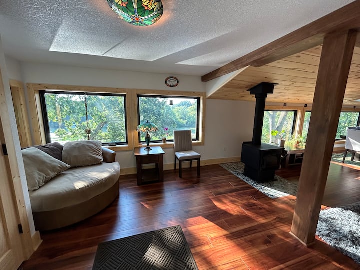Nuestro alojamiento se encuentra en la esquina noreste del lago, donde el río Oconomowoc se encuentra con el lago Okauchee, lo que te da acceso a ambas hermosas aguas. Para los golfistas, estamos ubicados a 15 minutos al sur de Erin Hills, un principal destino de golf del Medio Oeste. Para los motociclistas, estamos a lo largo de Kettle Moraine Scenic Drive y junto a Hollywoods Roadhouse Bar and Grill. Si eres un amante de la naturaleza, puedes ver las grullas , garzas y garzas mientras vadean en los humedales pescando para su próxima comida y escuchar a los grillos y ranas de toro cantar por la noche. Hay un kayak doble, dos kayaks individuales y un bote de remos para cuatro personas disponibles para que lo uses cuando quieras para explorar las aguas circundantes. Siéntete libre de traer cualquiera de tus propios juguetes acuáticos para explorar el lago, hay dos espacios de atraque disponibles y espacio frente al garaje para estacionar varios coches o un camión/SUV con remolque. ¿Vas a asistir a una boda en el Golden Mast? Esta humilde morada se encuentra a solo 8 minutos en auto o cruza el lago en tu barco. El Lily Pad realmente tiene algo para todos.