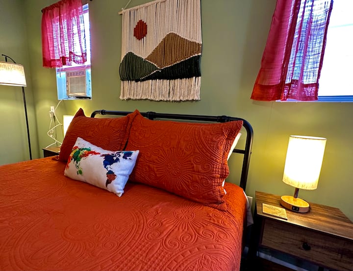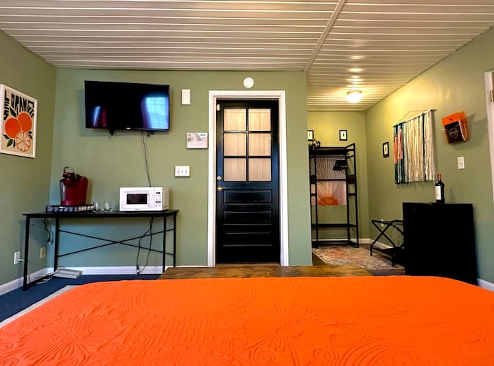 La primera experiencia de librería residencial de Virginia Occidental, The Bookshop Bungalow en Plot Twist Books, ofrece a los visitantes un espacio privado anexo a la tienda. Tendrás tu propio apartamento tipo estudio, con una entrada privada conectada a la librería. El espacio cuenta con una cama tamaño queen y comodidades como cafetera, mininevera, sala de estar, escritorio, calefacción/aire acondicionado con control personal, ventilador de techo y TV (cable básico más un Roku para que puedas iniciar sesión en tus plataformas de streaming). También hay aparcamiento privado fuera de la calle, así como mucho aparcamiento en la calle justo enfrente de la tienda y una lavadora/secadora en el sótano si es necesario.
