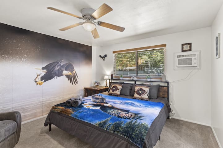 Relájate con estilo junto al centro de la ciudad en el Rustic Hideaway de Reno. Amplia casa de 3 dormitorios y 2 baños con 3 camas tamaño king y un jacuzzi para 6 personas. La cocina del chef está totalmente equipada para preparar deliciosas comidas. Disfruta de una vista tranquila, TV de 75 pulgadas, té, café y chocolate caliente mientras estás cerca de todas las actividades al aire libre, pero a solo 2 minutos del centro de Reno y a 30 minutos del lago Tahoe, a 22 millas de distancia (esquí, senderismo, ciclismo, actividades de playa). A 4 millas del aeropuerto RNO, a 30 minutos de Carson City y Virginia City.