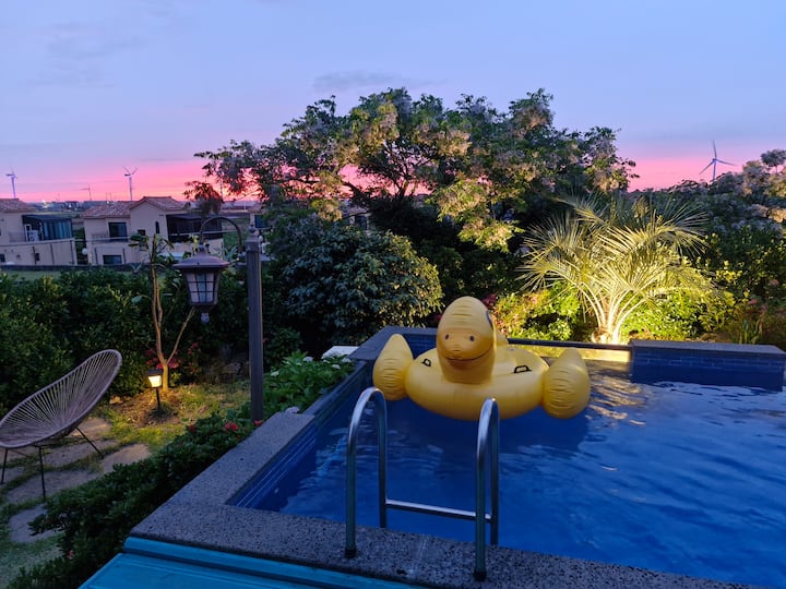 Venta privada de villa d con piscina d 50% de descuento en la venta de Panpo Co., Ltd. Lavadora y secadora de jardín de palmeras de playa Simons cama