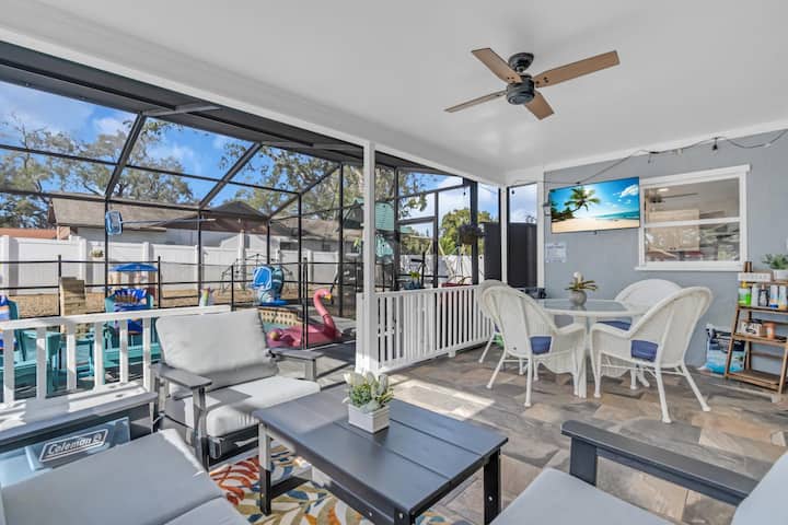Te damos la bienvenida a Coastal Escape, un refugio familiar en Palm Harbor diseñado para disfrutar de escapadas cómodas, divertidas y sencillas en Florida. Disfrute de una piscina de agua salada climatizada, un lanai con mosquitero, un patio trasero privado cercado, un parque infantil y detalles adicionales para los huéspedes que viajan con niños.