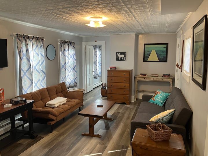 ¡Desde este hermoso y totalmente surtido apartamento, salta a la estación de tren de Dover para ser transportado a Boston, Portland o a cualquier lugar intermedio!