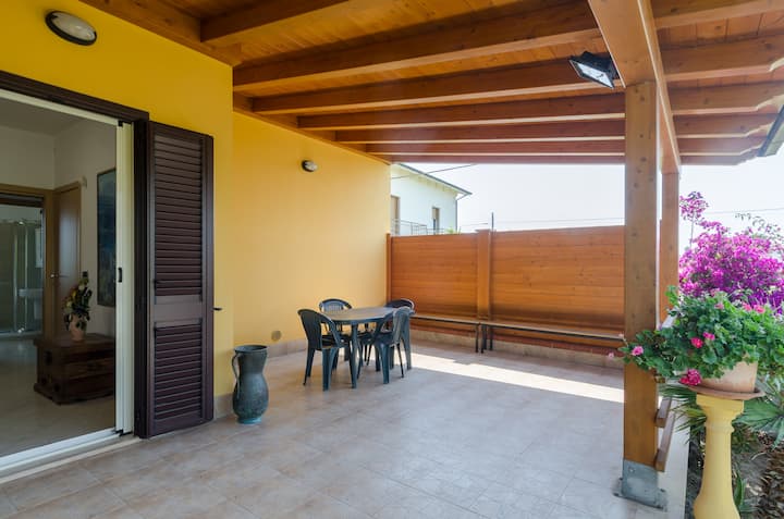 Villa en la playa con jardín privado y pérgola