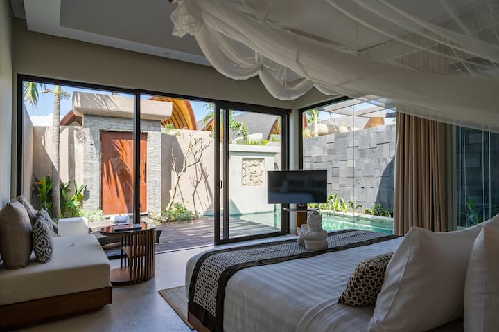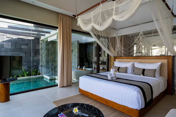 ¡Villa de 1 dormitorio en Canggu con bañera y piscina!