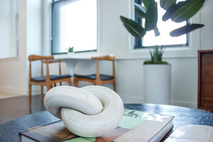 Tenemos varias moradas en esta propiedad. Cada uno está diseñado para proporcionar a nuestros huéspedes un lugar hermoso, limpio y cómodo para hospedarse. Las fotos te darán una idea del estilo de este edificio. Si bien tu morada puede variar ligeramente, estará igual de bien diseñada. Ten en cuenta que las configuraciones del comedor varían. La cocina de tu Abode estará amueblada con una zona de estar de bar para al menos 3 personas o una mesa de estilo bistró para 3 personas.
