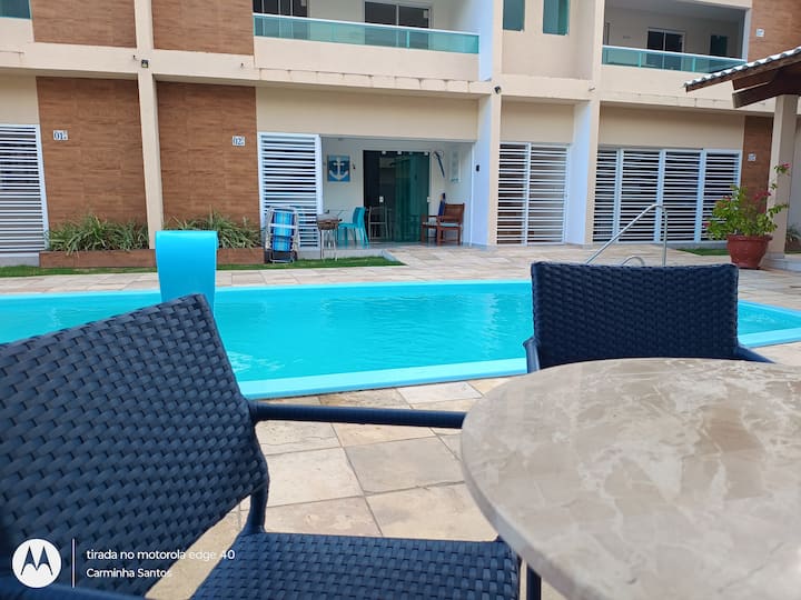 Apartamento frente a la piscina, a 200 m de Praia dos Carneiros