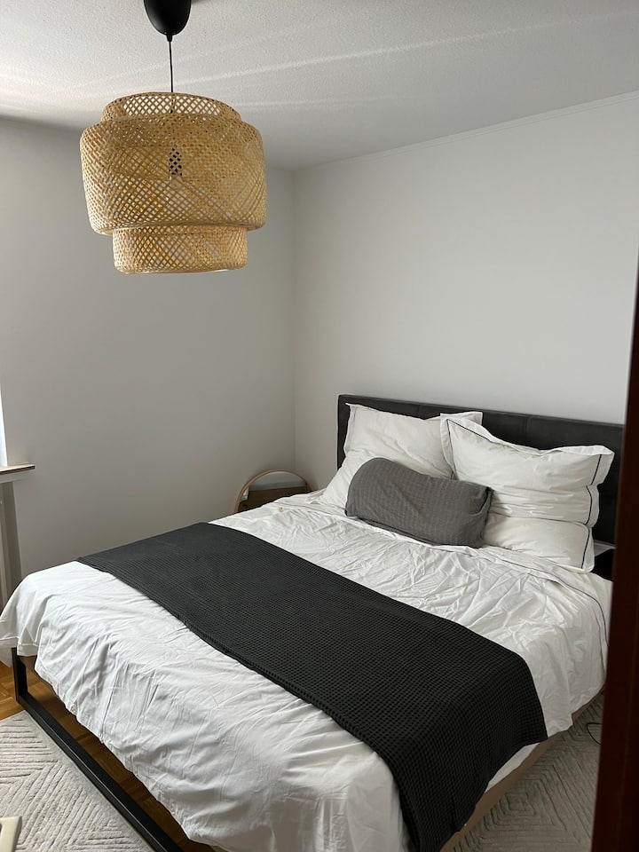 Tienes todo el apartamento para ti solo, incl. Balcón, cocina, baño con ducha y bañera, dormitorio, sala de estar y sala de trabajo/huéspedes. Una lavadora y secadora también están a tu disposición.