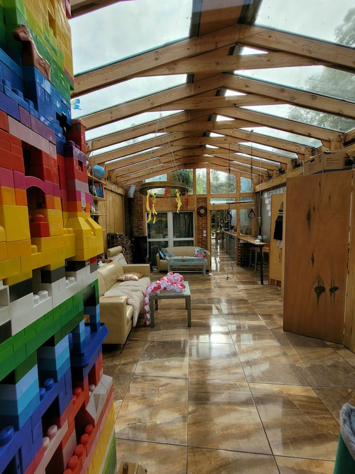 La casa es un bungalow muy peculiar, hogar de mi hija de 13 años y yo soy músico y generalmente trabajo desde casa, por lo que prefiero tener huéspedes que tengan planes diurnos que los lleven fuera de la casa (Nota: esto también se aplica potencialmente a los fines de semana, cualquier consulta, por favor, indícalo en tu consulta de reservación). El ambiente es muy tranquilo y amigable pero independiente :-)