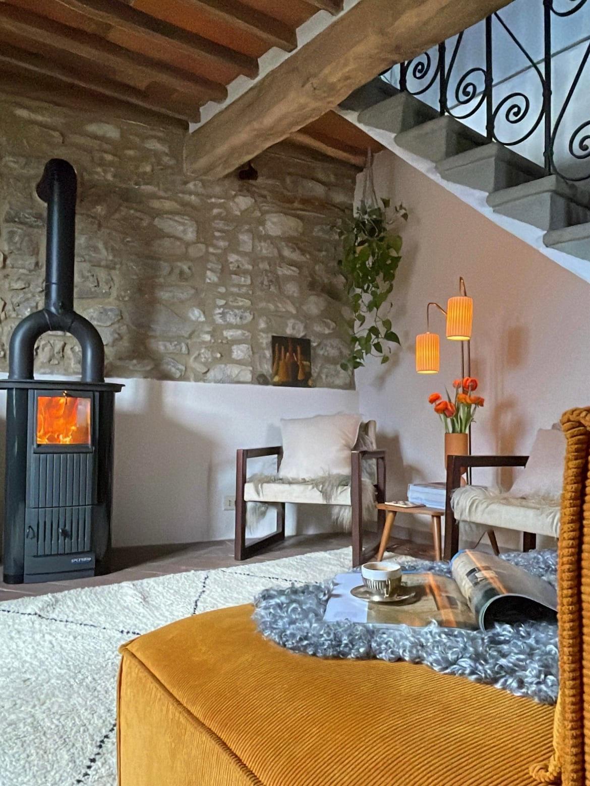 Ubicada en el pintoresco pueblo de montaña de Vico Pancellorum, esta casa es una hermosa propiedad rústica moderna con características originales como pisos de baldosas de terracota, vigas de madera de castaño y escaleras de piedra, todas las cuales han sido restauradas para crear un telón de fondo maravilloso para los muebles vintage y de mediados de siglo. Una maravillosa terraza comunitaria con hermosas vistas ofrece a los huéspedes un lugar para relajarse o disfrutar de un aperitivo a la sombra de la vid.