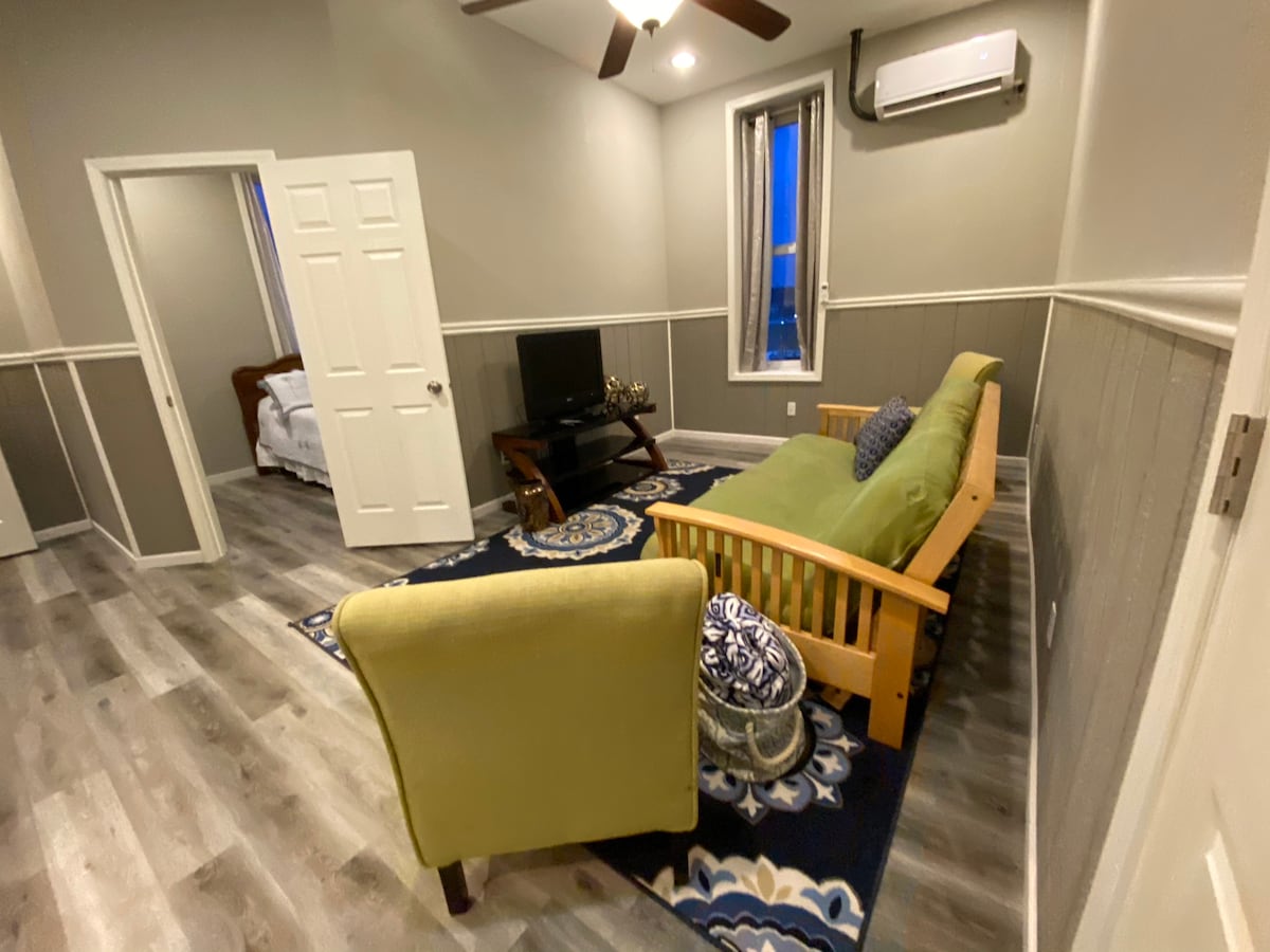 Nuestro apartamento Upper East Side en el centro de Fort Scott, Kansas, es un loft en todo su esplendor. Convenientemente ubicado en el distrito histórico de Fort Scott, los huéspedes están a solo unos pasos de boutiques locales, tiendas de antigüedades, museos, senderos para caminar, restaurantes, lugares para eventos y el sitio histórico nacional de Fort Scott. Esta espaciosa suite cuenta con una cocina equipada, una cama tamaño king, una cama completa, un sofá y un baño completo. Servicio de lavandería disponible. ¡Únete a nosotros para el fin de semana o haz que sea una estancia prolongada!