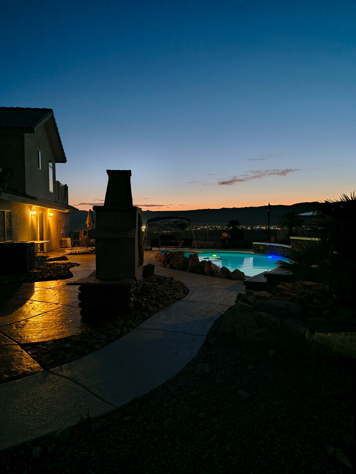 ¡Escápate a nuestro oasis en el desierto de 1 acre en Las Vegas! Nuestra casa ofrece una mezcla única de comodidad y emoción, con un balcón con impresionantes vistas a las montañas y un vistazo al vibrante Strip de Las Vegas. 1200 pies cuadrados de espacio de vida para hasta 4 personas, piscina de 22’de profundidad de 4’ con tobogán, pickleball y baloncesto Disfruta de un corto campo de golf par 3 justo en tu patio trasero. Experimenta la magia del paisaje desértico, a poca distancia en auto del bullicioso Strip. Tu aventura te espera aquí en este paraíso del desierto