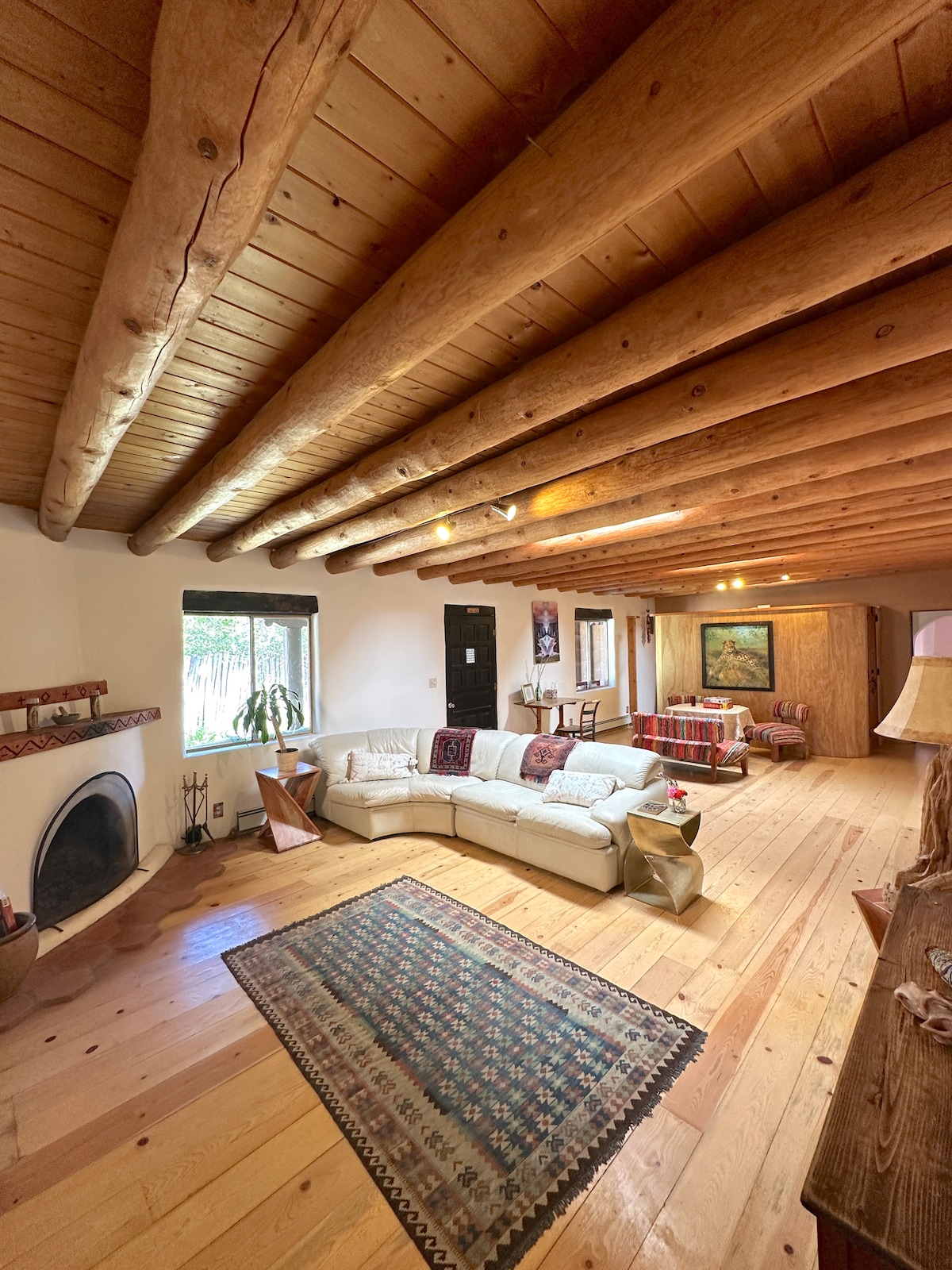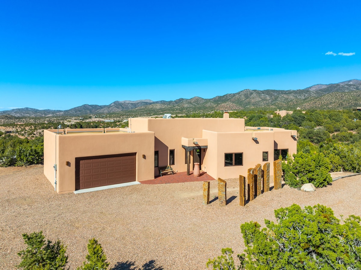¡La Fiesta del Globo está a la vuelta de la esquina! No te pierdas la oportunidad de reunirte en esta casa grande y cómoda en 20 acres en Tesuque cerca de la Ópera de San Francisco. Con vistas a tres cordilleras, esta casa se encuentra a pocos minutos del centro de Santa Fe. El interior está bien iluminado y es cómodo, con muebles resistentes que pueden manejar un grupo grande. Las reuniones familiares y la vida informal funcionan perfectamente aquí. Tres patios hacen que el entretenimiento al aire libre sea una visita obligada. El clima de Santa Fe es una gran casa cubierta y exterior. ¡Buena wifi! ¡Se admiten mascotas!