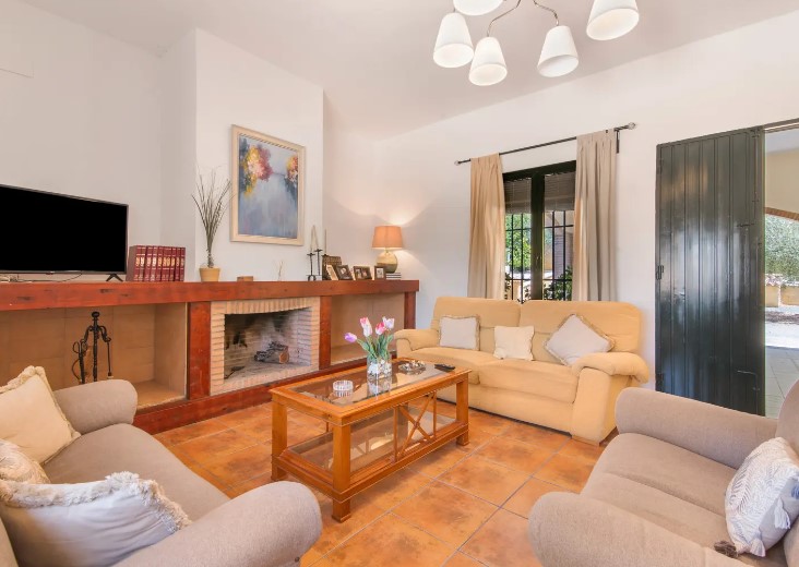 Relájate y desconecta en este alojamiento tranquilo y elegante. Chalet situado a unos 3 kilómetros del pueblo (Cantillana) y a unos 30 Kilómetros de Sevilla. Chalet amueblado, con tres dormitorios (2 con ac. y uno venti. techo), un baño, terraza, un salón con chimenea y una cocina totalmente equipada. Una gran piscina privada y junta a esta hay un cuarto de baño y cocina. Zona amplia con césped y con hamacas ideal para tomar el sol o jugar. También poseemos de una barbacoa. Ideal para familias.