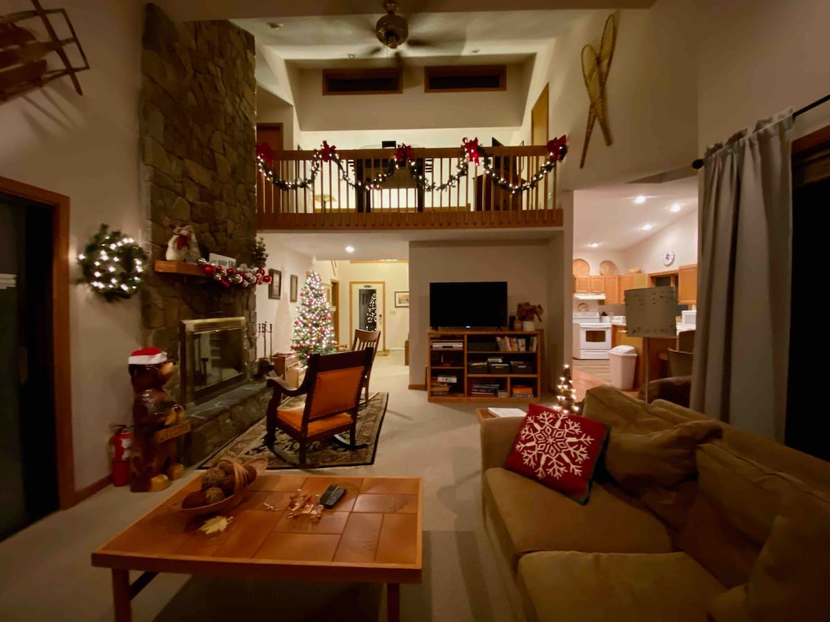 ¡Más de 500 reseñas positivas y contando! Los domingos siempre se hace el check-out después de la hora establecida (7:00 p. m.) para que puedas disfrutar de un día completo. Hermosa cabaña con una gran terraza y todas las comodidades para una escapada relajante a la montaña. Observa a tus hijos en el campo de juegos desde la terraza o ve la increíble exhibición en el cielo nocturno mientras contemplas las estrellas entendiendo por qué la llaman la Vía Láctea. La propiedad está rodeada por todos lados por un refugio de vida silvestre y puedes ver los tres centros de esquí desde la terraza. * Tarifa por mascota de $35