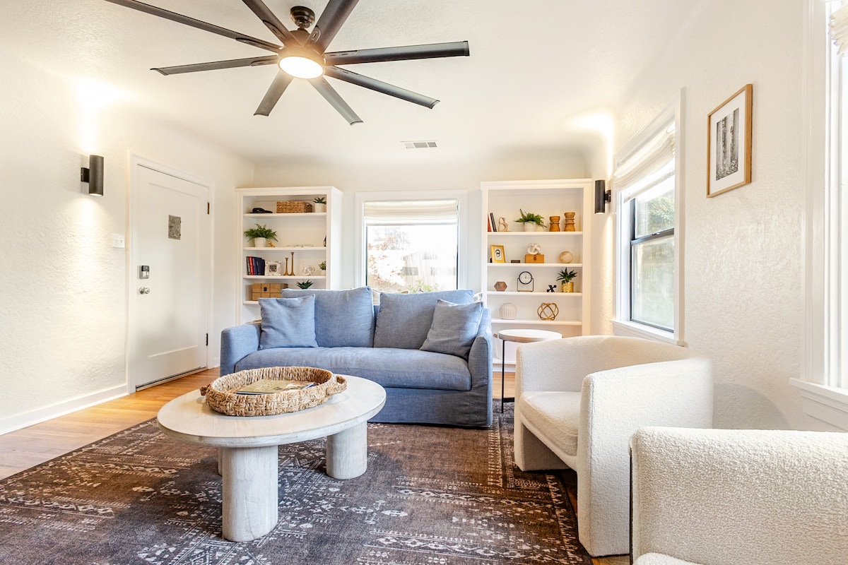 Disfruta de una experiencia de lujo en este céntrico alojamiento. Este alojamiento es una casa de 1930 recién reformada y situada en el corazón del centro de Visalia. Estás a solo un paseo de restaurantes de propiedad local (¡te proporcionaremos nuestros favoritos!), disfruta del Paseo del Vino o tal vez de un partido de los Rawhide. ¡El mercado de agricultores de los jueves por la tarde de Visalia también está a pocas manzanas de distancia!Realmente disfrutarás de este céntrico alojamiento.
