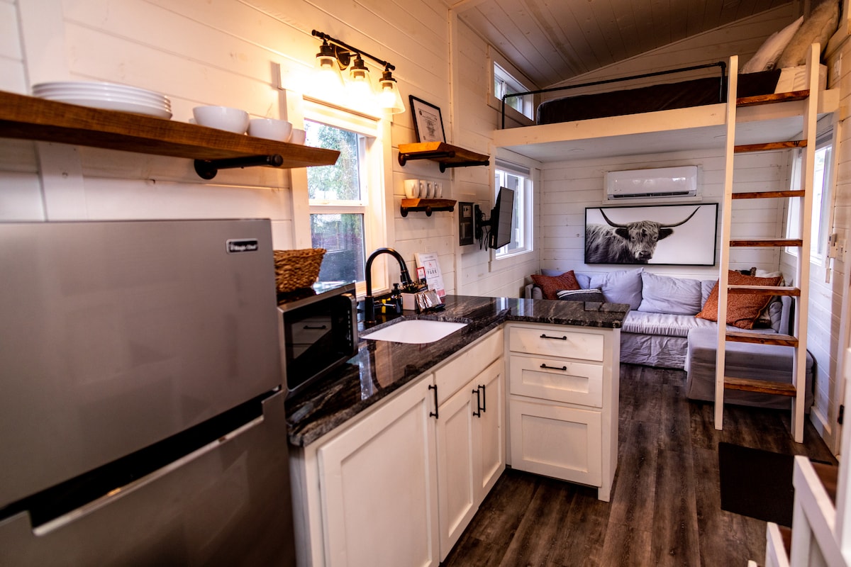 Bienvenido a la Unidad 6, tu acogedor y pequeño alojamiento diseñado para un máximo de 4 huéspedes. Este es solo 1 de 7 alojamientos únicos. Cada uno contiene una cama loft de tamaño completo y un cómodo sofá cama tamaño queen. El baño cuenta con una ducha de pie y artículos de aseo personal completos. Una cocina pequeña bien equipada incluye una mininevera, microondas y platos. La sala de estar tiene un sofá, una silla y un televisor Roku de 36 pulgadas. ¡Disfruta de un espacio encantador y funcional para tu escapada a Williston! Para unidades adicionales, ve a “Homestead Tiny Resorts”.